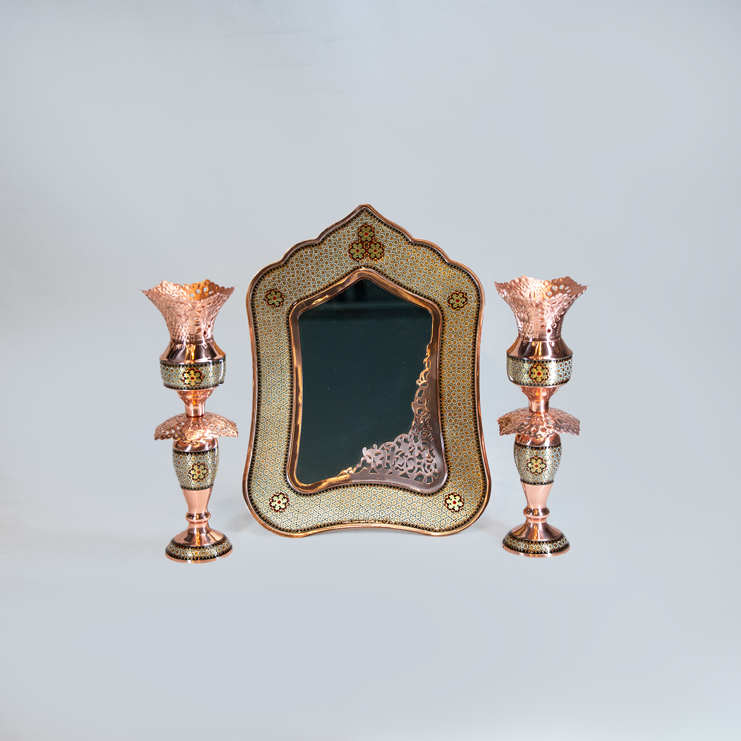 • آیینه 40 و یک جفت شمعدان خاتم کاری
