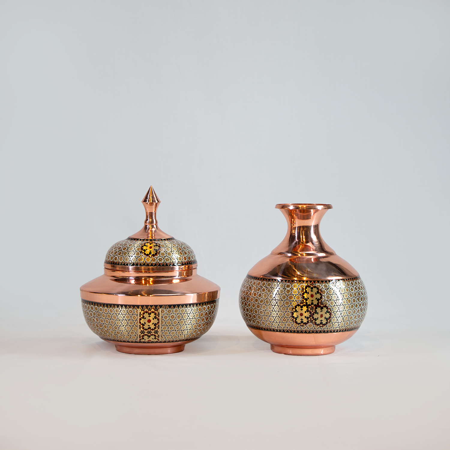قندان سلجوقی خاتم کاری و گلدان اناری سایز 2