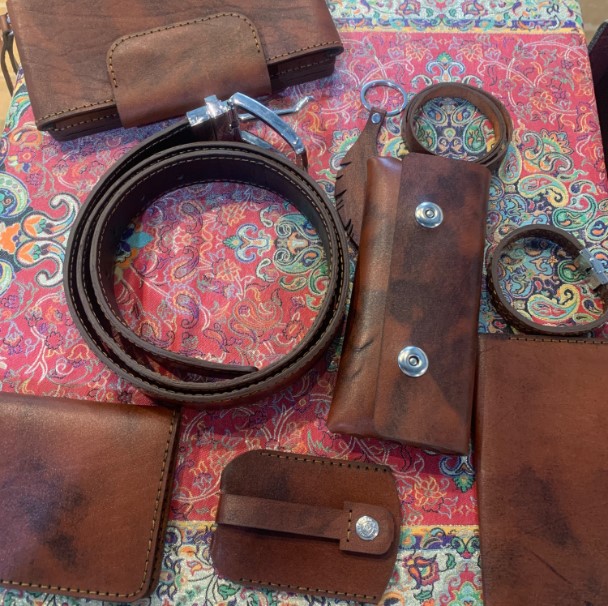 شامل 2 تا دستبند ، کمربند ، کیف پول ، کیف کارت ، کیف عینک ، جاسوئیچی و کیف پول بزرگ کتابی